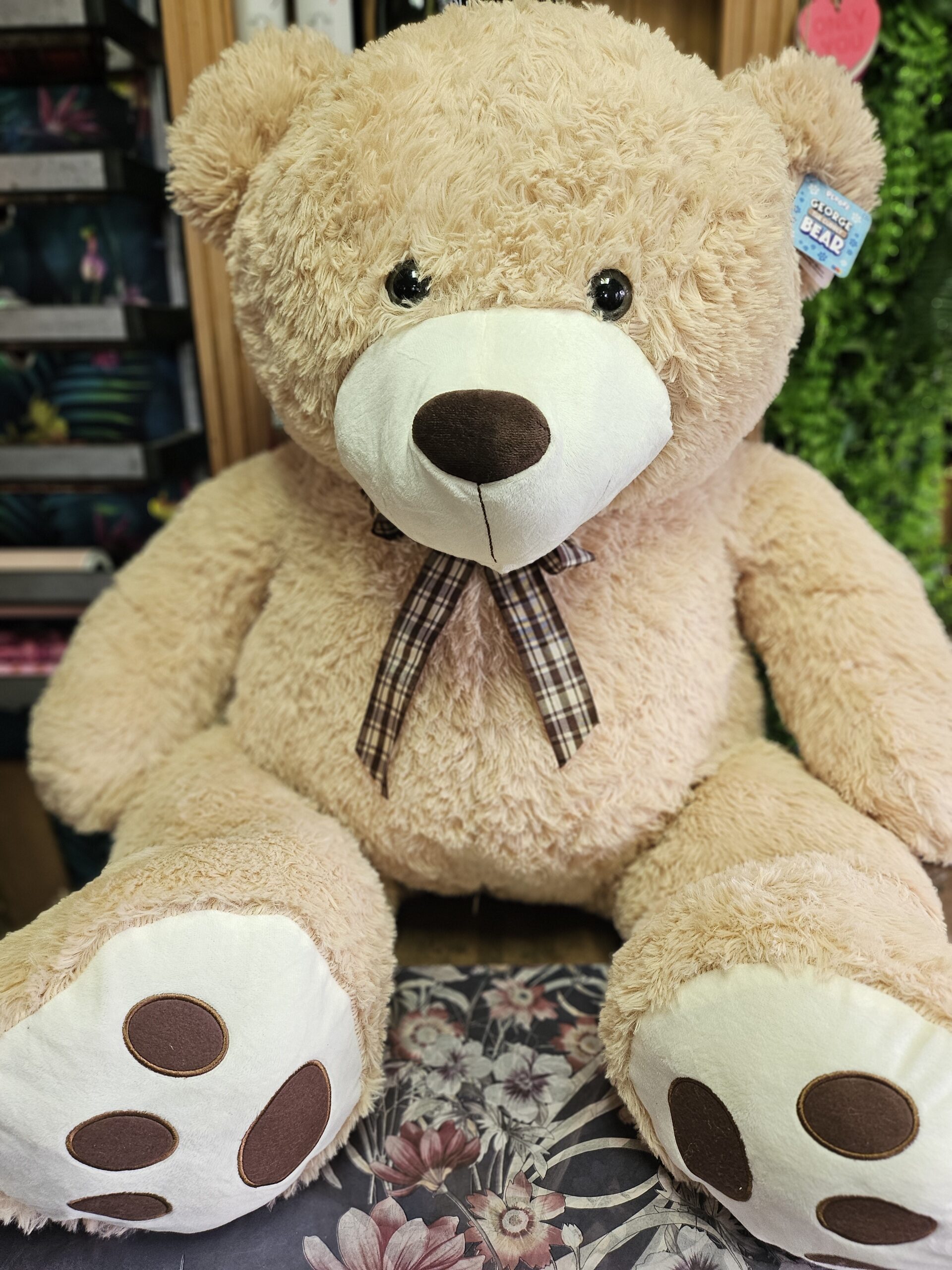 What a cute, cuddly, soft bear for 'your Valentine'! George's standing height is 100cm and when he sits down he is 71cm. We only have one, so be quick to order.